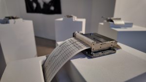Installation, 250 meters of 30 notes music scrolls, five music boxes, wood, variable mesures, 2019 – 2024